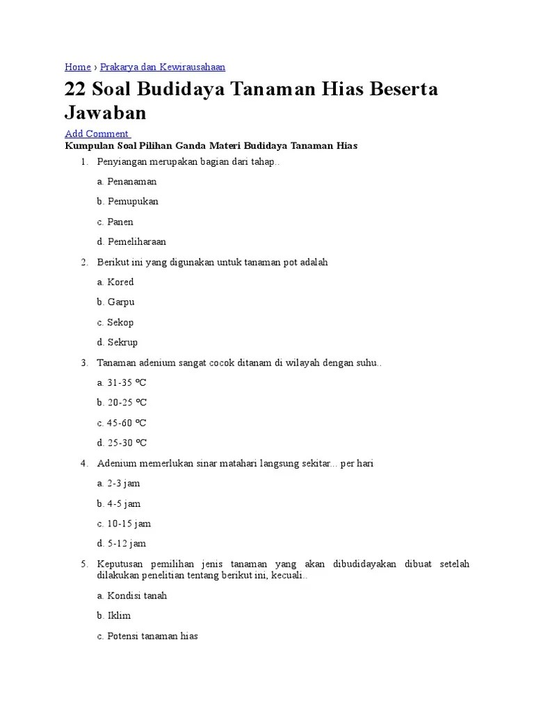 Budi daya tanaman hias dapat dilakukan di dalam pot (polybag) atau dalam hamparan lahan. 45 contoh soal utspts prakarya kelas 8 semester 1 beserta jawaban kurikulum 2013 smpmts halo selamat datang kembali di blog soal soal sekolah. contoh tanaman hias yang membiak secara vegetatif alami adalah bunga lili, gladiol, dan kanna. yang pertama adalah melepas bantalan (sebagian atau penuh). Di india, mereka mulai menanam tanaman.